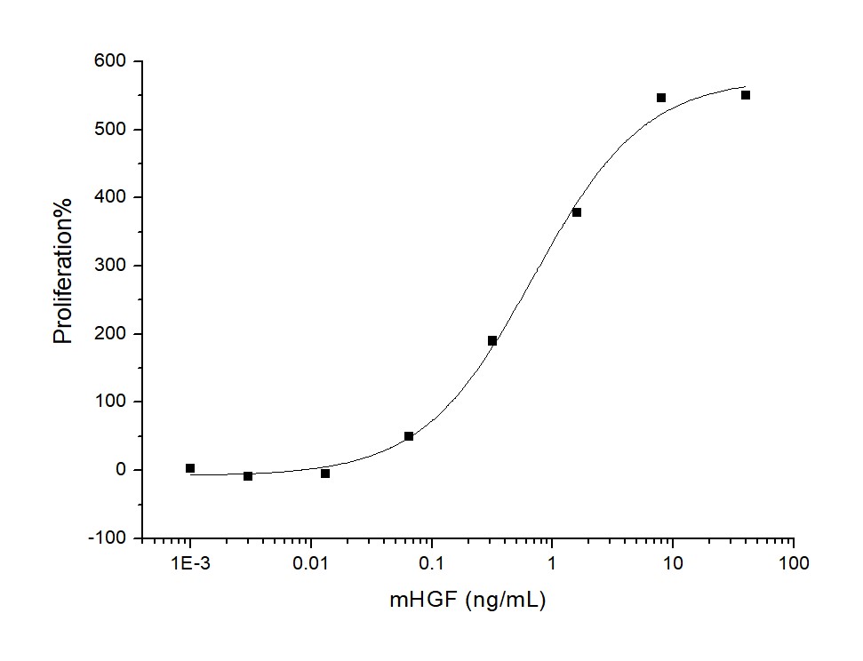 Hepatocyte growth factor, also known as HGF, contains 4 kringle domains, 1 PAN domain, and 1 peptidase S1 domain. It belongs to the peptidase S1 family, plasminogen subfamily. The hepatocyte growth factor is secreted by mesenchymal cells as a single inactive polypeptide and is cleaved by serine proteases into a 69-kDa alpha-chain and 34-kDa beta-chain. A disulfide bond between the alpha and beta chains produces the active, heterodimeric molecule. The hepatocyte growth factor regulates cell growth, cell motility, and morphogenesis by activating a tyrosine kinase signaling cascade after binding to the proto-oncogenic c-Met receptor, and acts as a multi-functional cytokine on cells of mainly epithelial origin. Its ability to stimulate mitogenesis, cell motility and matrix invasion give it a central role in angiogenesis, tumorogenesis, and tissue regeneration. HGF is a potent mitogen for mature parenchymal hepatocyte cells, seems to be an hepatotrophic factor, and acts as a growth factor for a broad spectrum of tissues and cell types. HGF has no detectable protease activity. Defects in hepatocyte growth factor are the cause of deafness autosomal recessive type 39. A form of profound prelingual sensorineural hearing loss. Sensorineural deafness results from damage to the neural receptors of the inner ear, the nerve pathways to the brain, or the area of the brain that receives sound information.