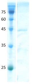 This recombinant protein contains C-terminal part of human AMH protein with a MW of 40 kDa. It is recognized by anti-human AMH antibodies from R&D systems in ELISA tests.