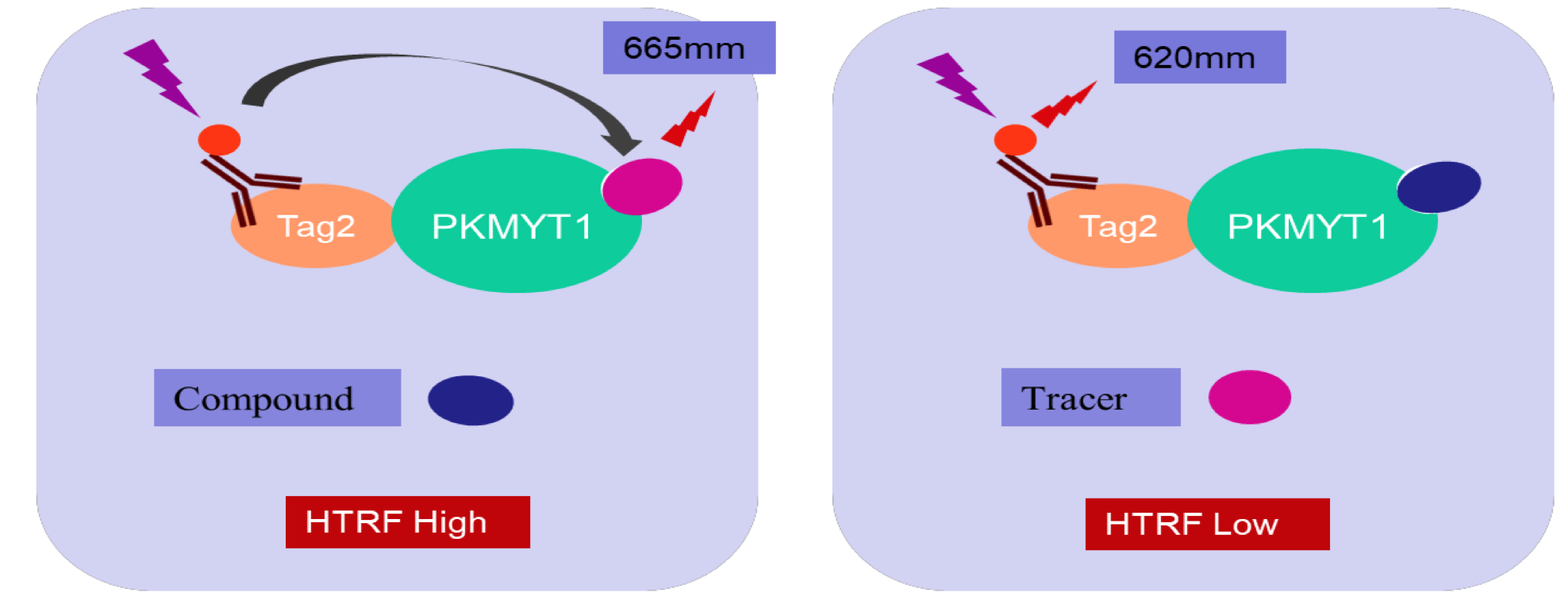 PKMYT1, a membrane-associated tyrosine- and threonine-specific cdc2-inhibitory kinase, belongs to WEE1 kinase family that plays an important role in the regulation of mitosis. PKMYT1 is involved in cell cycle progression and in response to DNA damages by inhibition of CDK1 activity through specific phosphorylation of Tyr15 and Thr14. Overexpression of PKMYT1 is observed in both solid and hematological tumors. Therefore, PKMYT1 is considered a potential therapeutic target for cancer treatment.