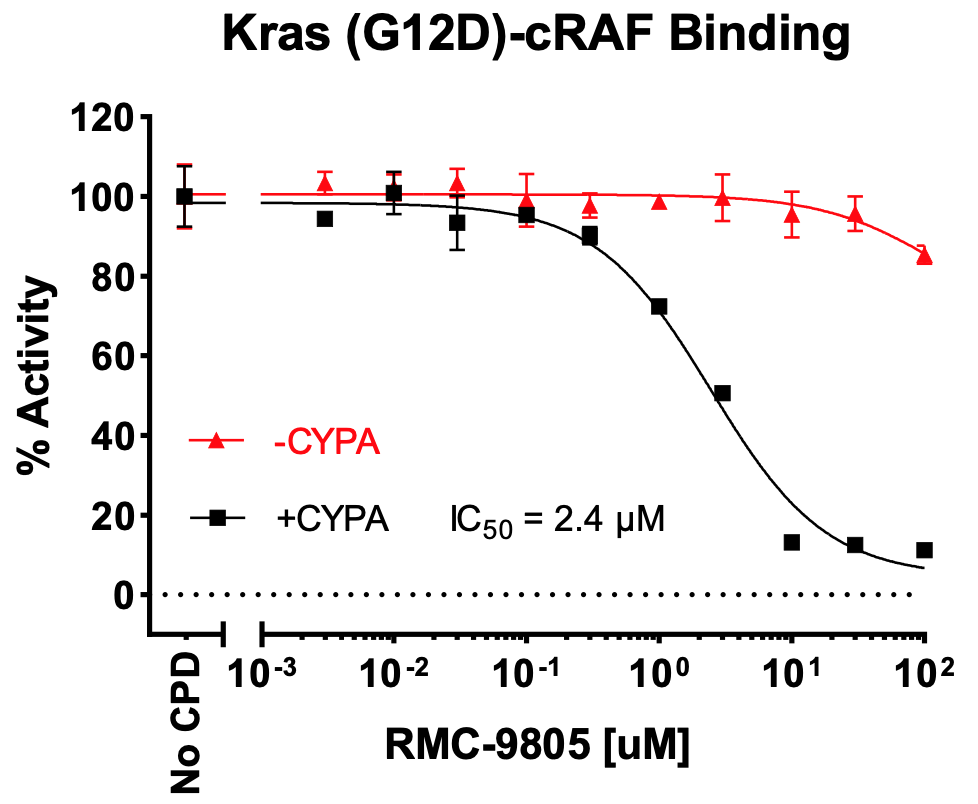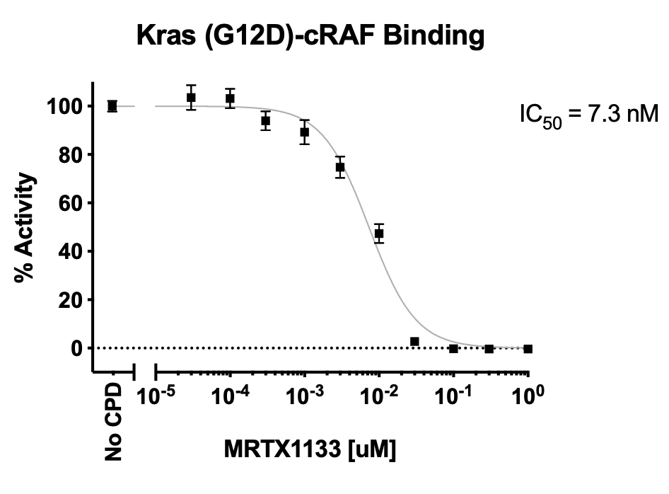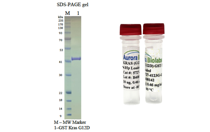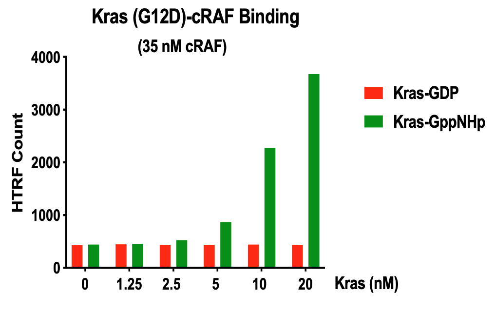 Kras is a member of the RAS protein family, which are a class of small GTPases involved in cell signaling. Plays a role in promoting oncogenic events by inducing transcriptional silencing of tumor suppressor genes (TSGs) in colorectal cancer (CRC) cells in a ZNF304-dependent manner. As an oncogene mutated in several different cancers, the G12D substitution mutation favors the activated, GTP-bound state of the protein.