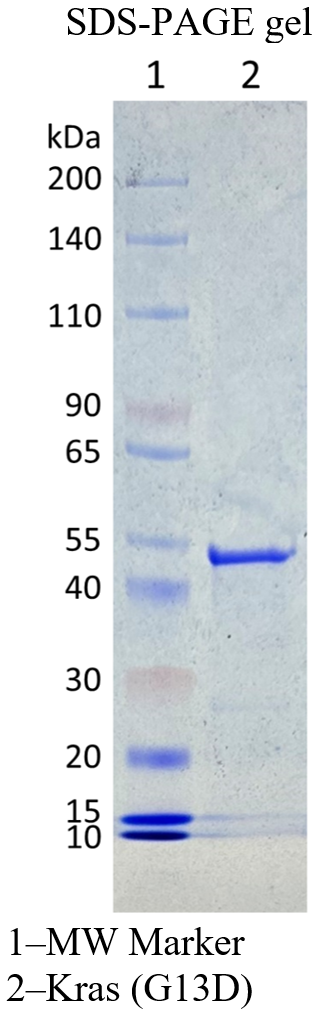 Kras is a member of the small G protein RAS family, which are a class of GTPases involved in cell signaling transduction. Kras G13D is present in 1.24% of AACR GENIE cases, with colon adenocarcinoma, colorectal adenocarcinoma, rectal adenocarcinoma, lung adenocarcinoma, and endometrial endometrioid adenocarcinoma having the greatest prevalence.